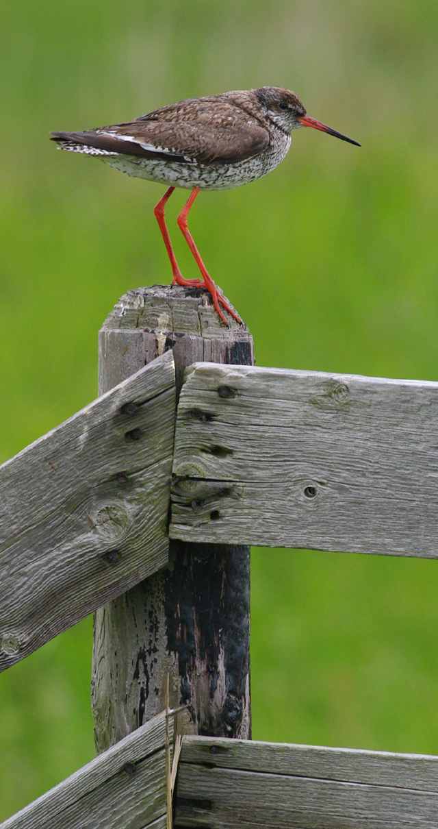 Tout comme sa cousine la barge à queue noire (dont je parlerai bientôt dans un autre article), le comportement territorial du chevalier gambette le pousse, en période de nidification, à se percher bien en évidence, le plus souvent sur un piquet de pâture, pour le plus grand bonheur du photographe de passage.