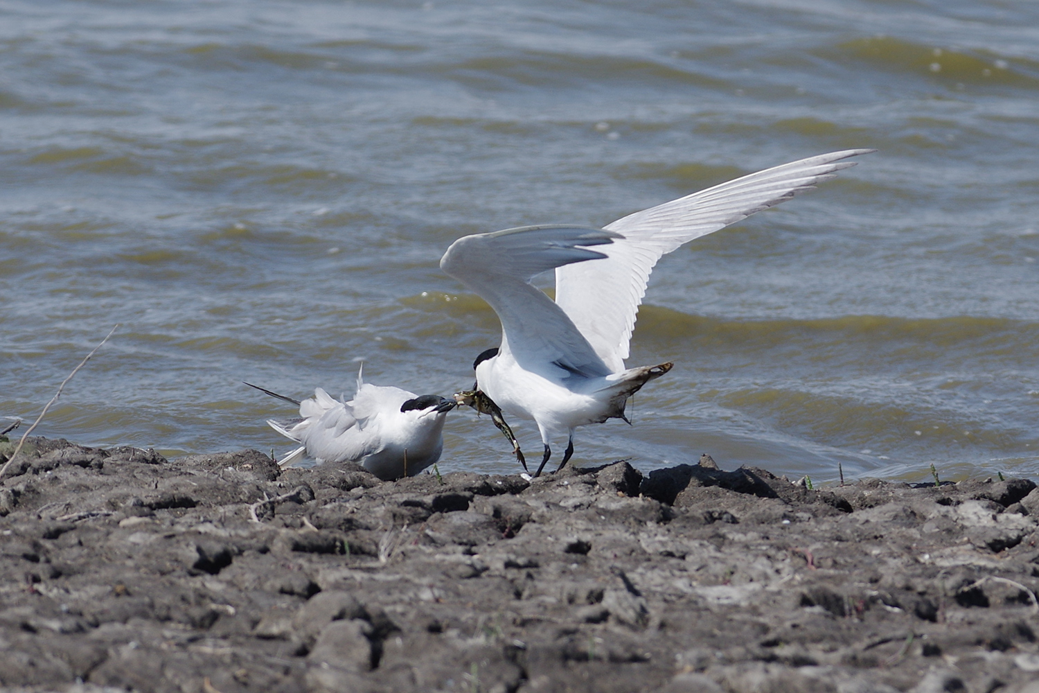Cette espèce se nourrit en grande majorité de petits invertébrés (dont beaucoup d’insectes). Contrairement aux autres sternes, elle consomme peu de poissons. Mais là, pour séduire la belle, peut-être que l’offrande d’un insecte est insuffisante. Alors, pourquoi pas un poisson ?