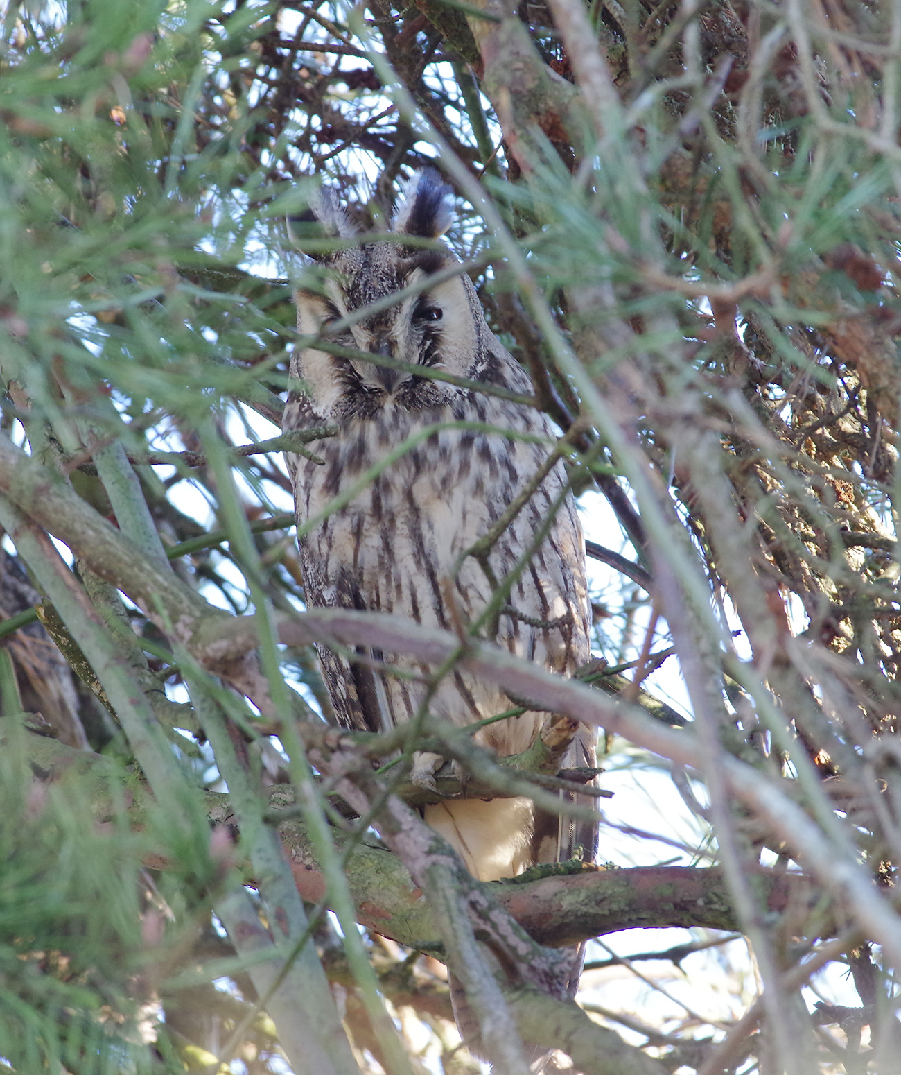 Il faisait si froid (malgré le soleil) que les proies habituelles de ce petit faucon (des insectes exclusivement) n’étaient pas disponibles ce jour-là. Très très peu d’activité donc (alors que 15 jours plus tôt, Michel et Pascale avaient vu des crécerellettes qui volaient partout). Et en plus, la période de la couvaison s’est installée entre temps, beaucoup plus calme.
